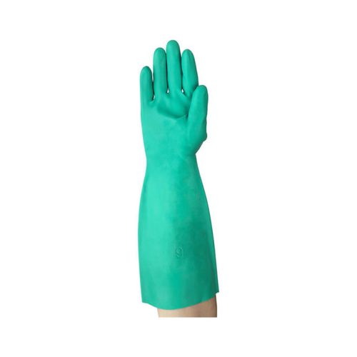 - Được làm bằng chất liệu cao su tổng hợp Nitrile cao cấp với kiểu dáng dài giúp bảo vệ an toàn cho toàn cánh tay người dùng trước những tác nhân gây hại như dung dịch axit, dung dịch kiềm, hóa chất văng bắn…