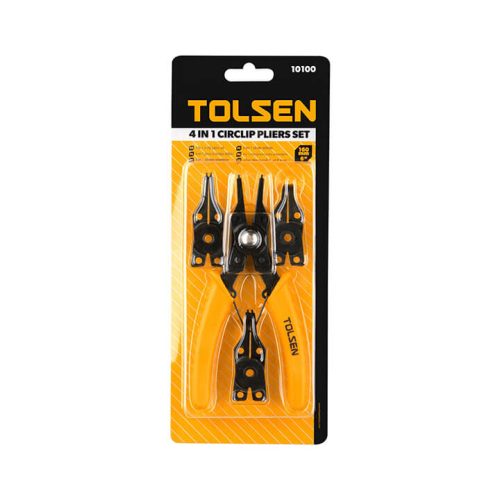 - Tolsen 10100 là một bộ kìm phe gồm 4 mũi kìm phe thông dụng, đáp ứng các thao tác tháo lắp phe, phanh trục, phanh lỗ, chi tiết linh kiện trong máy móc, xe cộ,…